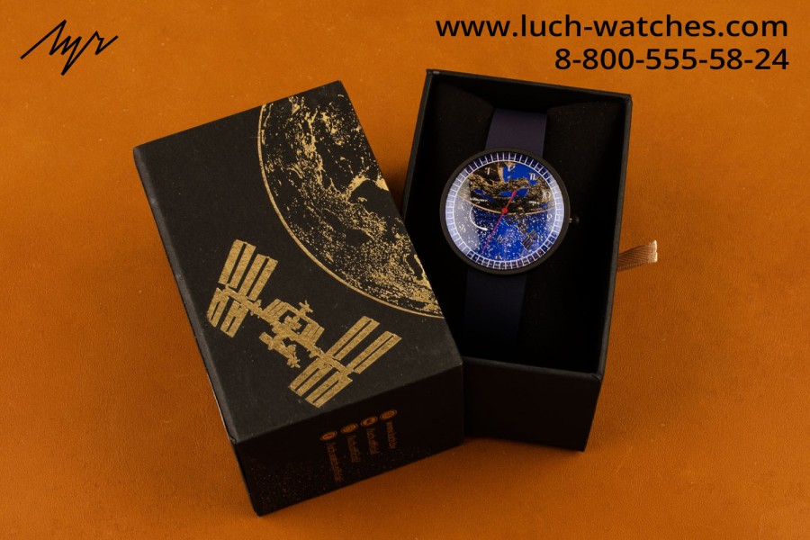 КорзинаМинский Часовой Завод и Роскосмос создали специальную серию часов «Минск-МКС», из коллекции «Обратный ход». Особенностью этой коллекции является уникальное направление стрелок - они идут в обратном направлении, символизируя бесконечный космос. На циферблате часов вы найдете изображения МКС и Земли, выполненные с особым вниманием к деталям. Фон циферблата имеет радиальный штрих, который создает эффект металлического блеска и глубины. Синий лак и белая печать звезд создают атмосферу ночного неба, а золотистая краска и тиснение морей придают циферблату реалистичность.